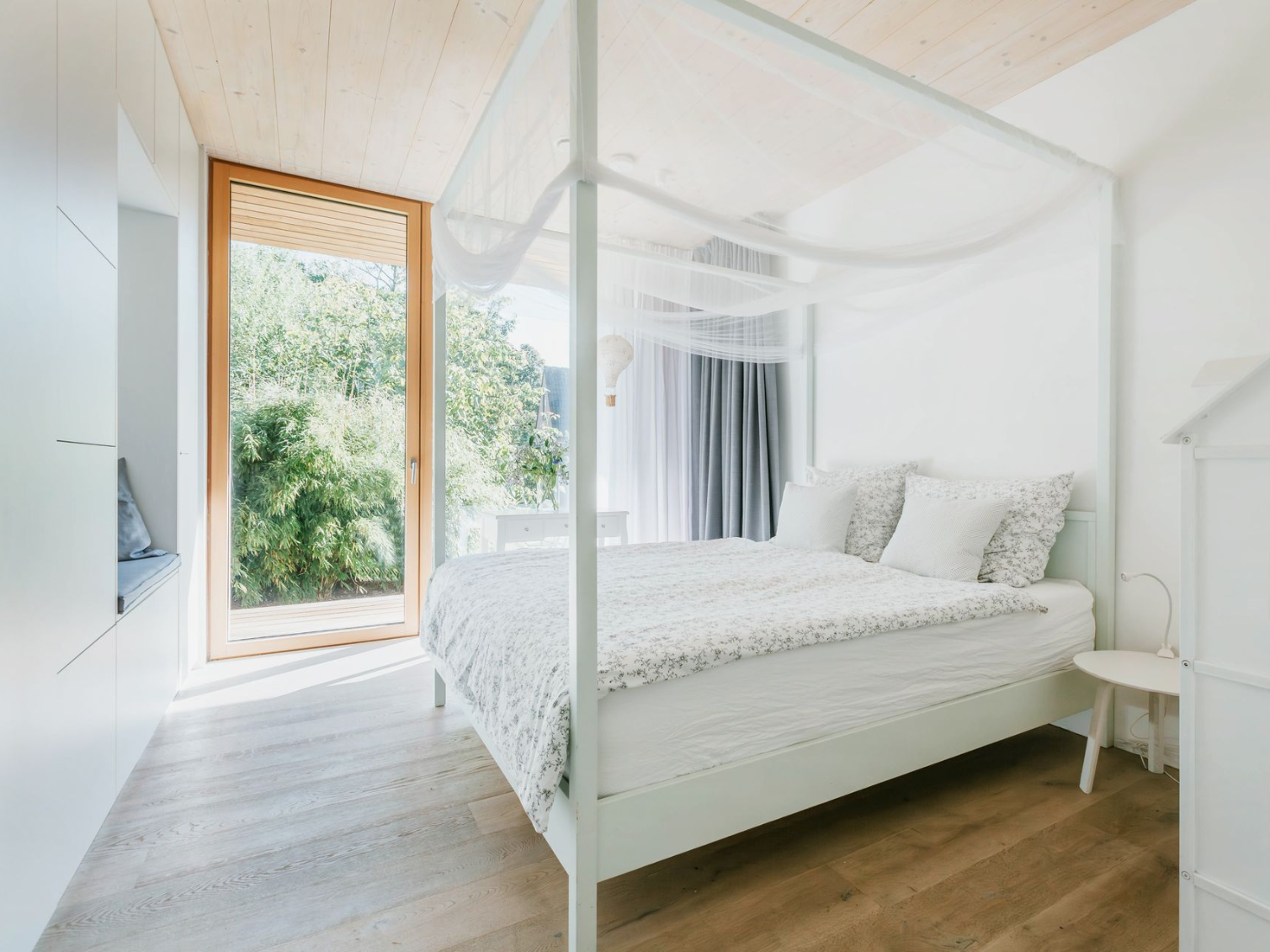 Bei der Haustechnik und den Materialauswahl haben wir Wert auf Natürlichkeit, Nachhaltigkeit und Ökologie gelegt: der Materialeinsatz ist minimiert, die tragenden Holzkonstruktionen bleiben sichtbar, Holzbeläge in allen Wohnräumen, Feinsteinbeläge in den Bädern, Fußbodenheizung und Lüftungsanlage mit Wärmerückgewinnung für ein angenehmes und hygienisches Raumklima in allen Räumen, Heizung und Warmwasser über Geothermie.